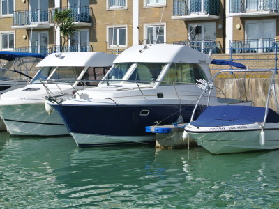 2 Owners from new, this popular 4 berth sports fisher from Beneteau is a good example with many extras. Spacious saloon with good seating around a varnished wooden table that converts to a double berth. Owners cabin forward has a large double berth offset to port, seating and a hanging locker/storage to starboard. Large open cockpit with high bulwarks and transom gate and ladder to flybridge.