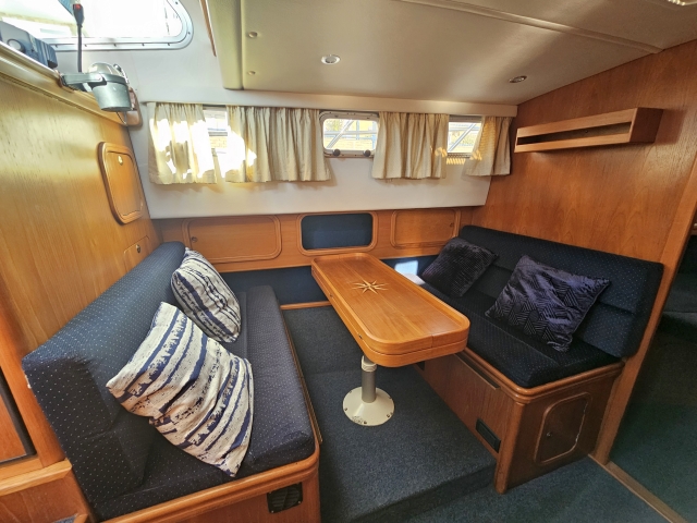 - U-shaped settee to port with reversible forward seat to create a co-helm seat when underway