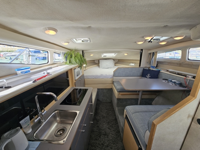 Powered by a MerCruiser 250hp petrol engine, this proven and capable cruiser offers an excellent balance of performance and practicality, making her equally suited to relaxed cruising or entertaining on the water.