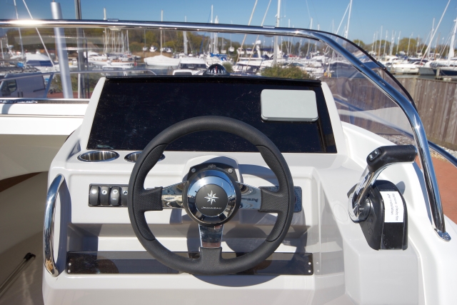 The series 3 Jeanneau Cap Camarat 6.5WA builds on the success of the previous model but has a completely new Michael Peters designed hull that delivers strong performance but also increases the internal size; now giving the cockpit size more akin to the 7.5WA; this model is a striking example with her blue hull.