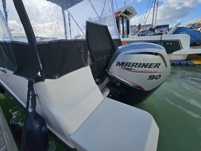 Powered by the reliable Mariner 90hp outboard, the boat delivers lively yet efficient performance, perfectly suited to coastal cruising and watersports while remaining easy to handle for both new and experienced boaters.
