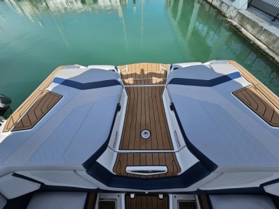 - Configurable Running Surface with Hydro-Plate (hydraulically actuated trim plate, allows for precise adjustment of the boat's running angle, which in turn affects the wake shape and size