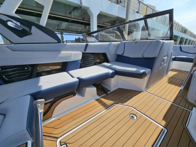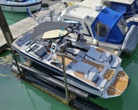 This particular G21 boasts a huge specification that sets it apart: premium Tower Speakers, Bimini top, Surf Select and Surf Switch — allowing riders to customize and control the wake and switch wave direction with ease. Add to that heated pilot and loveseat seats for those chilly UK mornings, and a Boatmate trailer that has never touched the water.