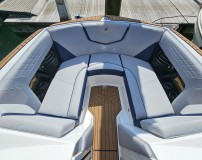 - Sliding reversible stern seats with flip-up lounge seat to port