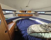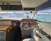 Her well-thought-out layout features two double cabins, a separate heads compartment, a bright saloon with a helm station, and a generous dinette area — providing plenty of room for extended stays onboard. Outside, she boasts a spacious aft cockpit with direct access to the bathing platform, plus a flybridge where all controls are conveniently repeated, offering excellent visibility and additional entertaining space.