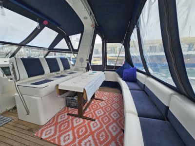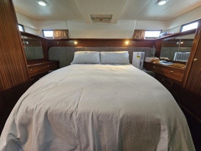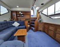 Fitted with the preferred twin 350hp Caterpillar 3116 engines, she delivers strong, reliable performance and the extra confidence needed for longer passages, while shaft drive and bow thruster provide excellent handling and close-quarters manoeuvrability.
